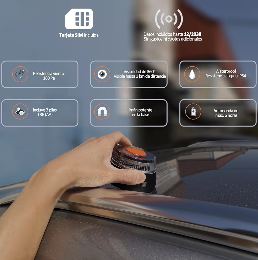 ✅ Conectividad automática y gratuita hasta 12/2038: Incluye tarjeta SIM con datos prepagados que envía tu ubicación en tiempo real a la plataforma DGT 3.0, sin necesidad de suscripciones ni pagos adicionales.