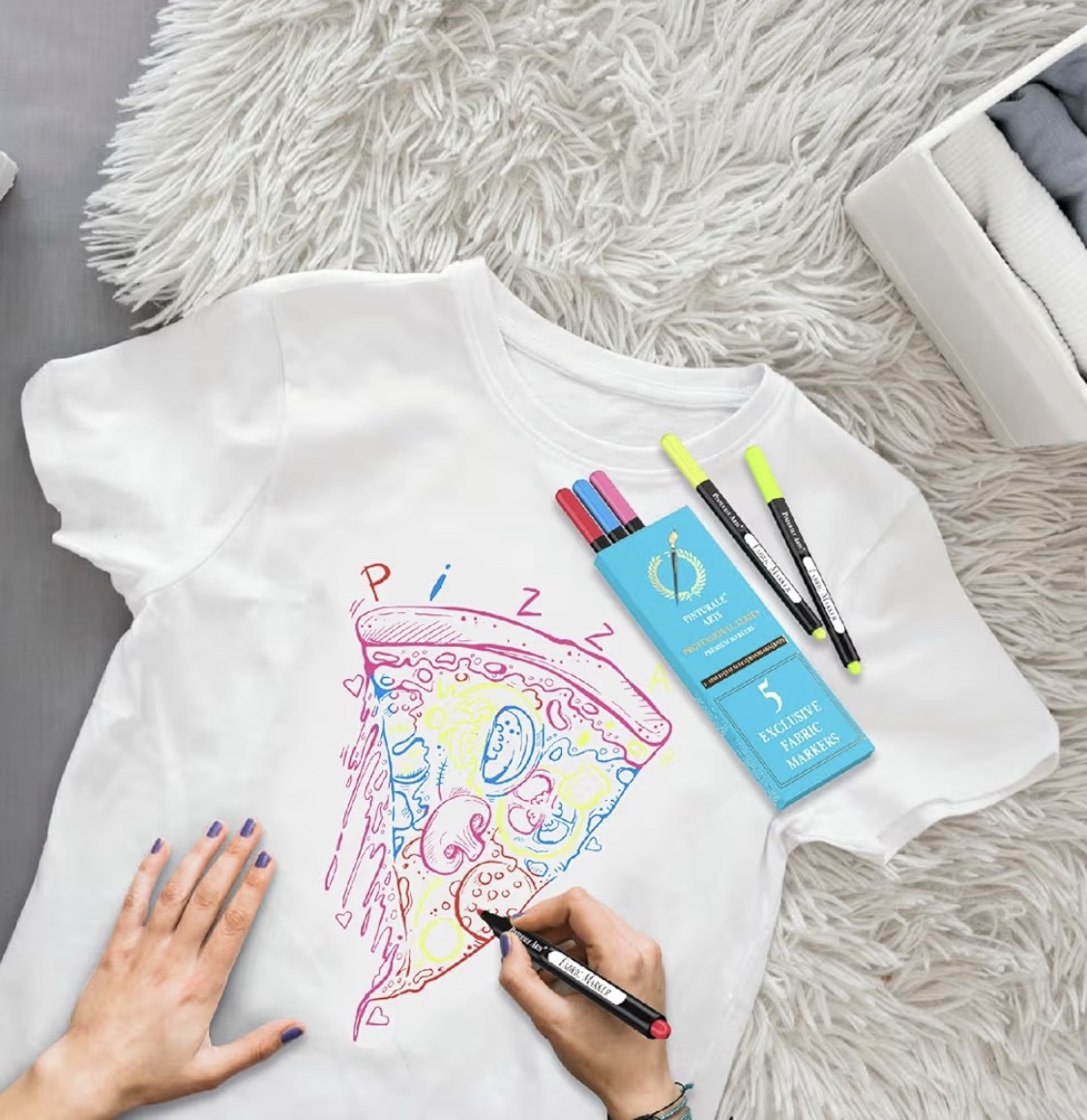 Diversión En Todo Tipo De Tejido – Nuestro set de 5 rotuladores textiles permanentes ropa es ideal para personalizar camisetas, bolsos, zapatillas y cualquier tipo de tejido.