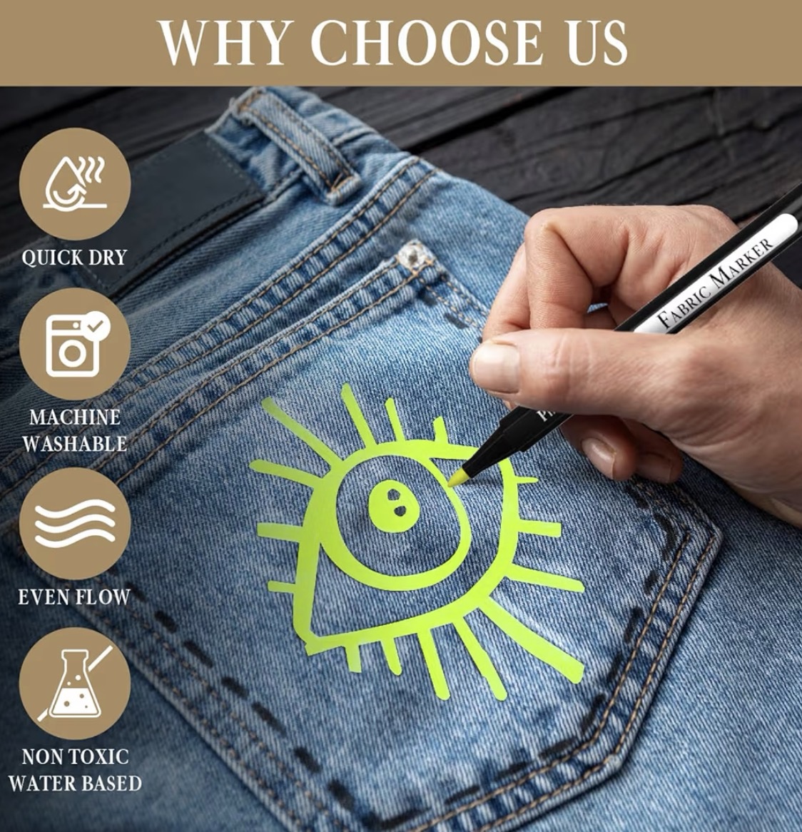 Calidad Que Perdura – Los rotuladores ropa textil permanente garantizan resultados duraderos incluso después de múltiples lavados, asegurando que tus diseños mantengan su intensidad de color en el tiempo.