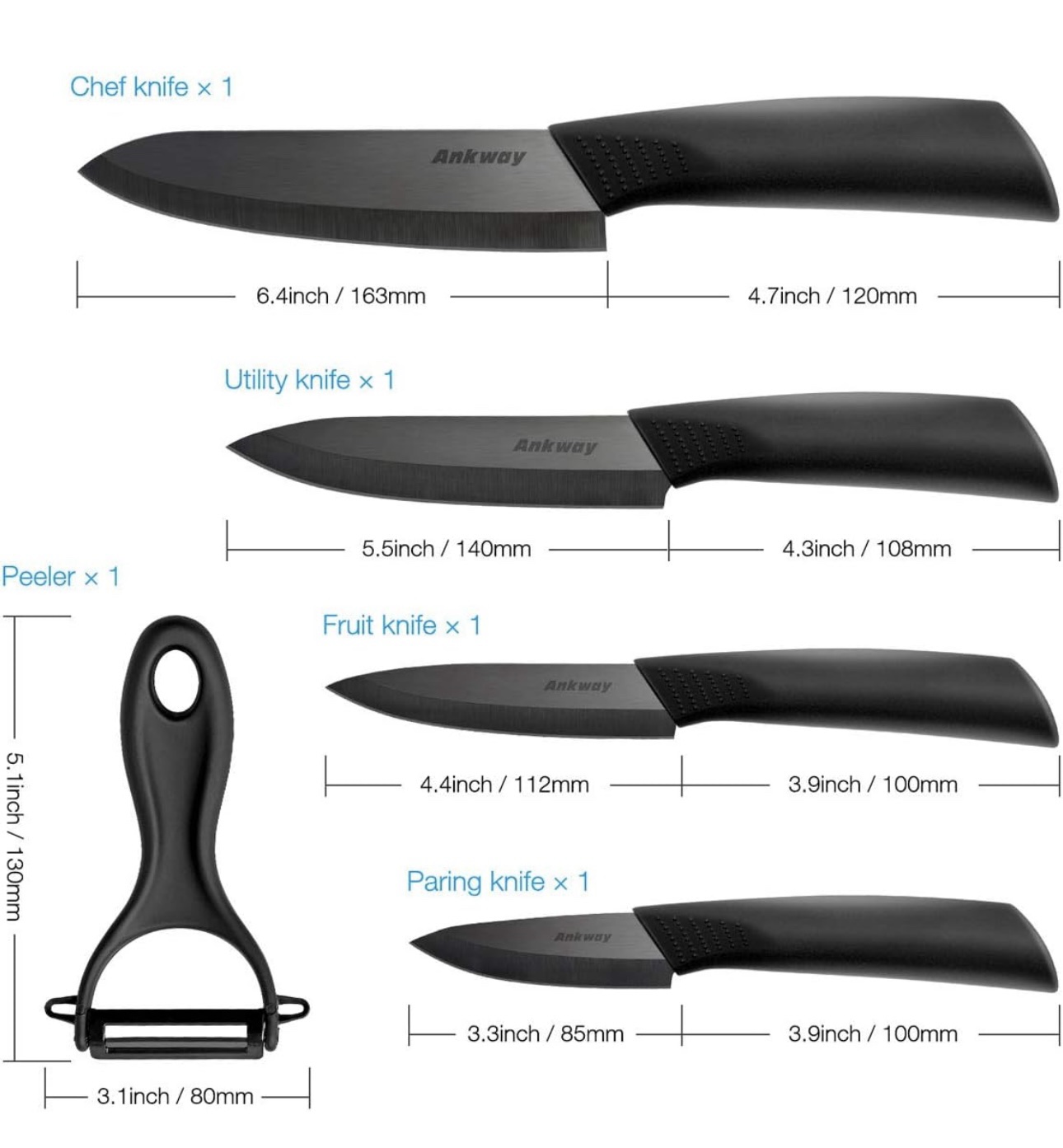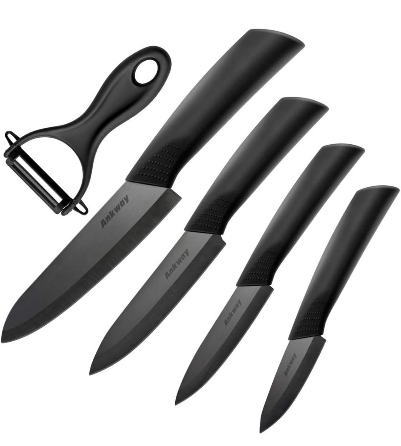 Set de 4 cuchillos más pelador , fabricados en cerámica y mango de plástico antideslizante